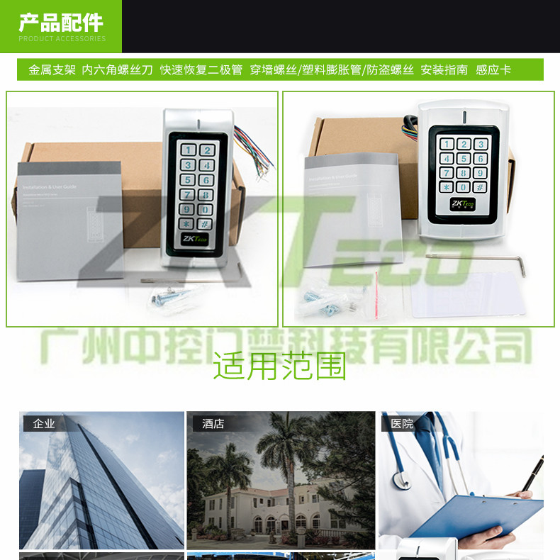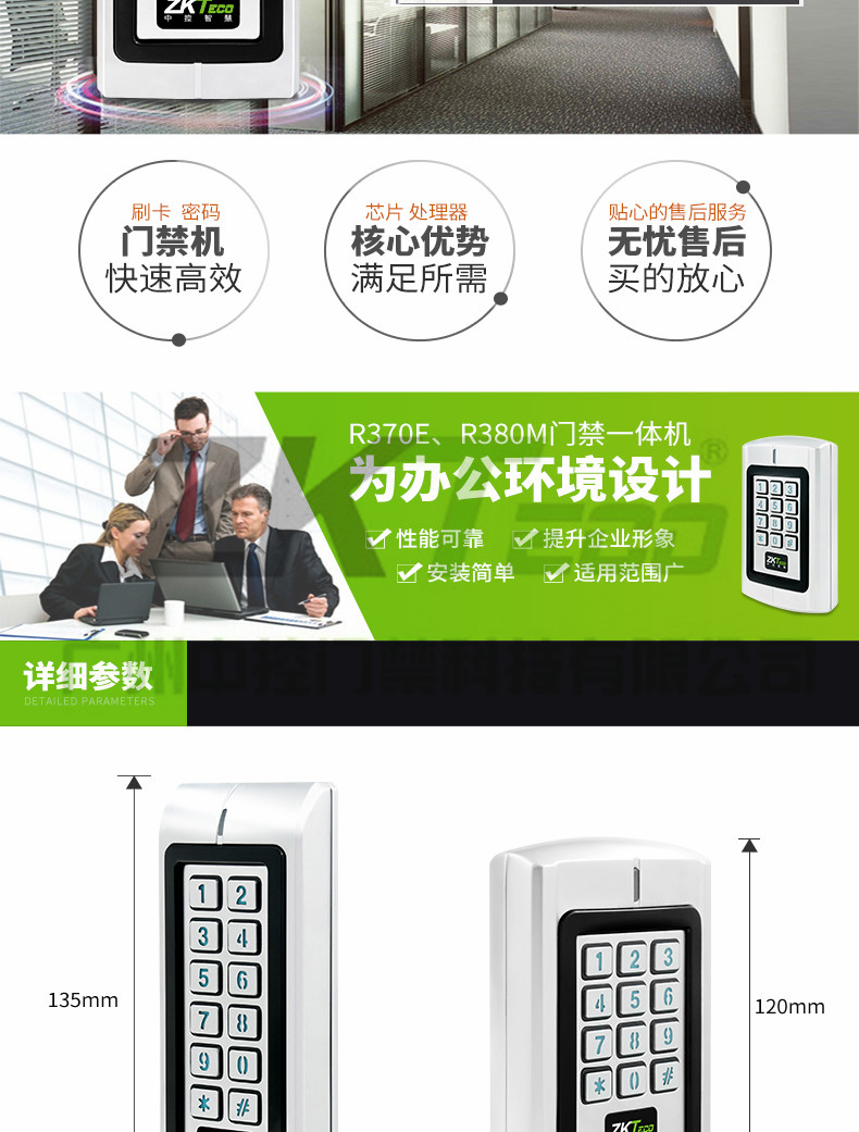 金屬刷卡門禁一體機R370/R380支持支持常規(guī)非接觸式ID卡、IC卡,二代證以及HID iclasss卡等,是目前比較先進的單門門禁控制器之一。采用獨特的金屬外殼設計,靈巧的鍵盤面板操作,內置高檔微處理器,抗干擾能力強,安全性和可靠性極高,可為1000個用戶提供強大的安全保障。具有超低功耗、夜光鍵盤、獨立密碼、韋根輸出、輸出短路保護、門磁報警、防拆報警、開門按鈕、門鈴接口、安全級別設置等強大功能,使用非常方便,可廣泛應用于家庭、辦公室、住宅等。