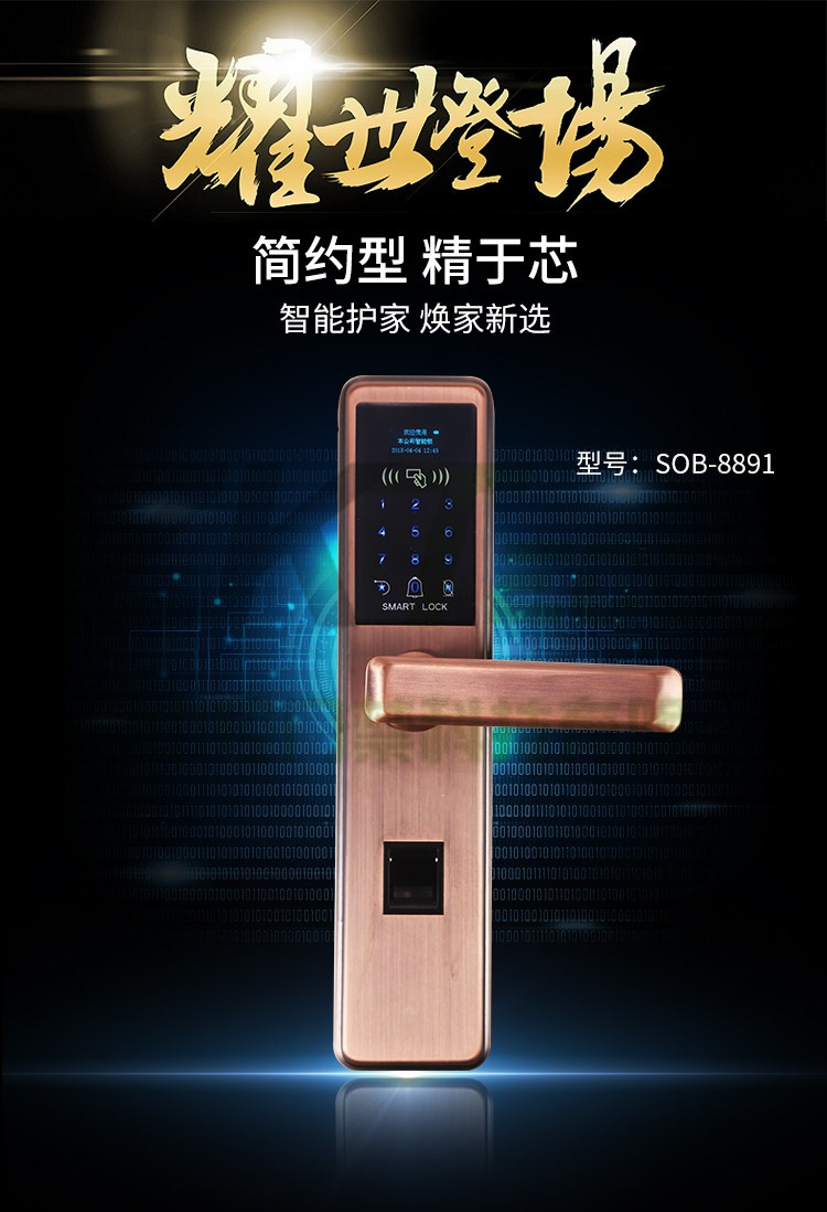 無需開孔指紋門鎖 家用不銹鋼密碼鎖
