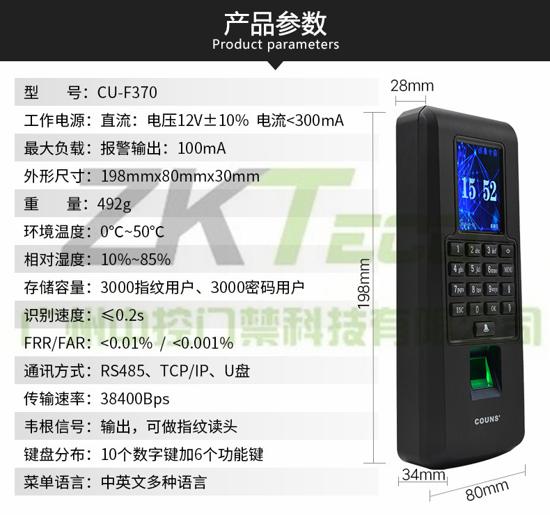 指紋考勤門(mén)禁機(jī)高優(yōu)CU-370