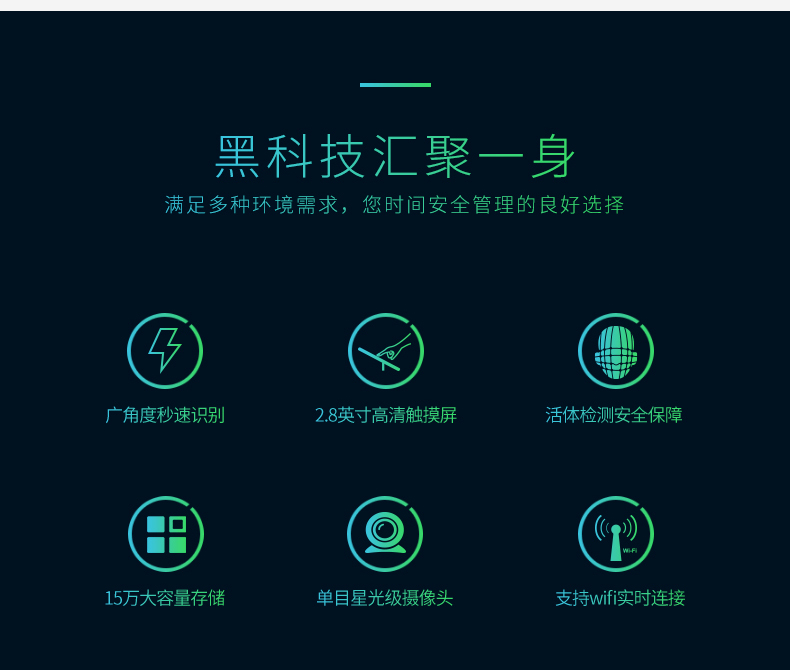 xFace50 是中控智慧全新推出的一款智能人臉識別終端,采用單目星光級200W高清人臉識別攝像頭,支持人臉識別和活體檢測,安全便捷。采用觸摸屏設(shè)計,多點觸摸,操作簡單。遠距離面部認證,超廣角度面部識別。支持WiFi通訊,可手動調(diào)整網(wǎng)絡(luò)設(shè)置,滿足多種環(huán)境的網(wǎng)絡(luò)連接,是您時間安全管理的絕佳選擇。