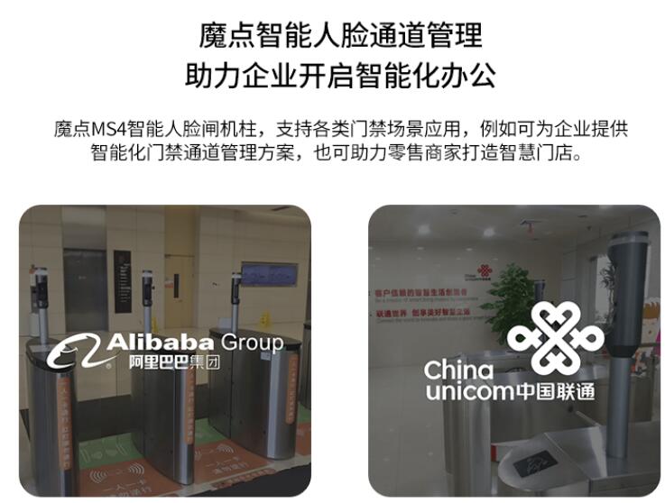 魔點(diǎn)MS4智能人臉閘機(jī)柱,支持各類門禁場景應(yīng)用,例如可為企業(yè)提供智能化門禁通道管理方案,也可助力零售商家打造智慧門店。